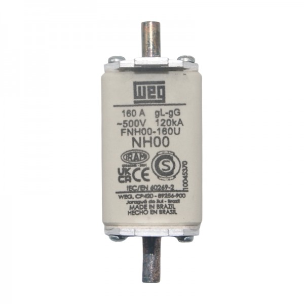 Os fusíveis gL/gG retardados tipo NH contato faca são montados em corpo cerâmico de alta qualidade, com preenchimento com areia de quartzo, elemento fusível em cobre eletrolítico e conexões tipo faca em latão prateado. Esta construção proporciona ótima isolação elétrica, rigidez mecânica e resistência contra choques térmicos durante a atuação do fusível. Cod:013643