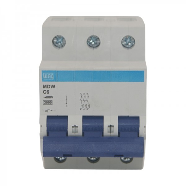 Disjuntor Tripolar 6A Weg Mini DIN MDW C6 5kA Curva C