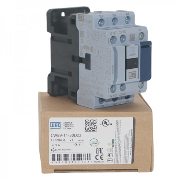 Os Contatores, em geral, são dispositivos eletromecânicos que fazem o controle on/off de cargas elétricas a partir de um circuito de comando. Sendo assim, a linha de Contatores Weg CWB, foi produzida através de resultados obtidos pela análise de softwares de modelagem para simulação de sistemas eletromagnéticos e eletromecânicos, desse modo, os contatos elétricos dos contatores CWB são fabricados com ligas especiais de prata, que asseguram excelente condutividade elétrica e alta confiabilidade de contato. Durante a operação, os contatos de abertura dupla e as câmaras de extinção garantem a rápida extinção do arco e uma elevada resistência contra os efeitos de desgaste do arco elétrico, e consequentemente, uma longa vida elétrica. Cod:013238