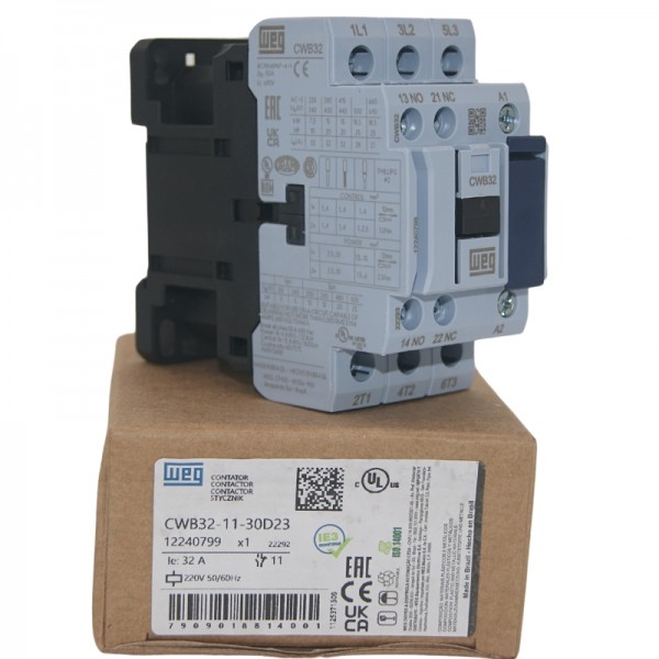 Os Contatores, em geral, são dispositivos eletromecânicos que fazem o controle on/off de cargas elétricas a partir de um circuito de comando. Sendo assim, a linha de Contatores Weg CWB, foi produzida através de resultados obtidos pela análise de softwares de modelagem para simulação de sistemas eletromagnéticos e eletromecânicos, desse modo, os contatos elétricos dos contatores CWB são fabricados com ligas especiais de prata, que asseguram excelente condutividade elétrica e alta confiabilidade de contato. Durante a operação, os contatos de abertura dupla e as câmaras de extinção garantem a rápida extinção do arco e uma elevada resistência contra os efeitos de desgaste do arco elétrico, e consequentemente, uma longa vida elétrica. Cod:013240