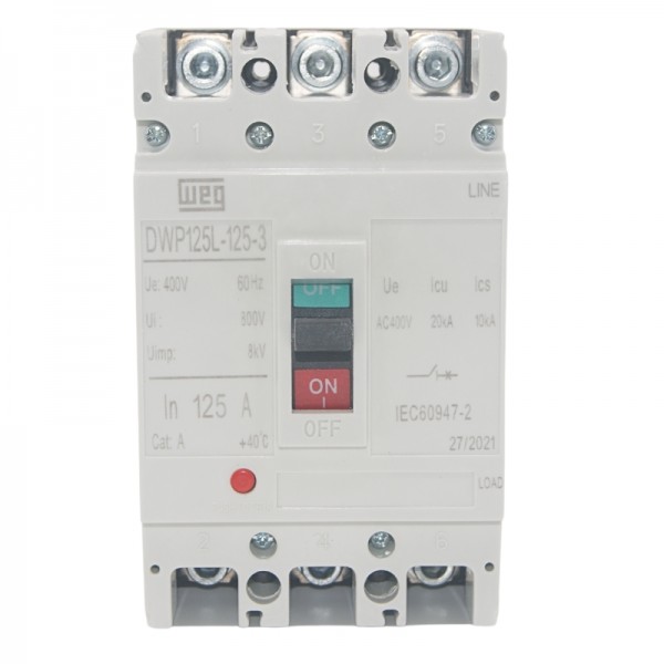 O disjuntor em caixa moldada DWP125L da Weg apresenta alta tecnologia, com eficiência na proteção de circuitos de distribuição de baixa tensão e sobrecarga de até 125A.