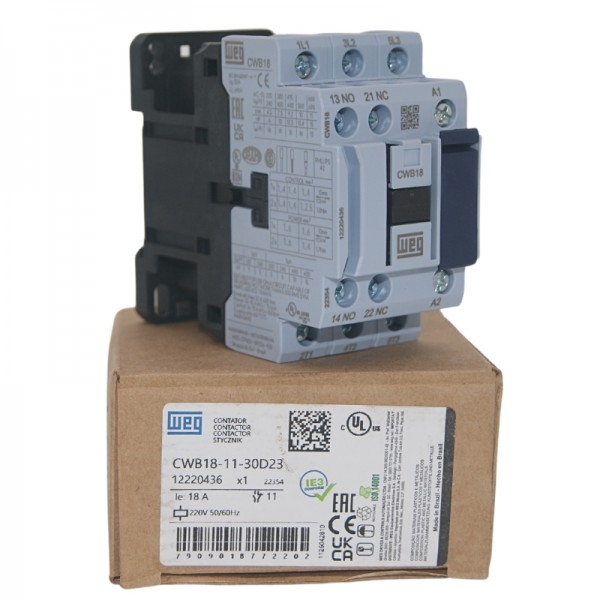 Os Contatores, em geral, são dispositivos eletromecânicos que fazem o controle on/off de cargas elétricas a partir de um circuito de comando. Sendo assim, a linha de Contatores Weg CWB, foi produzida através de resultados obtidos pela análise de softwares de modelagem para simulação de sistemas eletromagnéticos e eletromecânicos, desse modo, os contatos elétricos dos contatores CWB são fabricados com ligas especiais de prata, que asseguram excelente condutividade elétrica e alta confiabilidade de contato. Durante a operação, os contatos de abertura dupla e as câmaras de extinção garantem a rápida extinção do arco e uma elevada resistência contra os efeitos de desgaste do arco elétrico, e consequentemente, uma longa vida elétrica. Cod:013508
