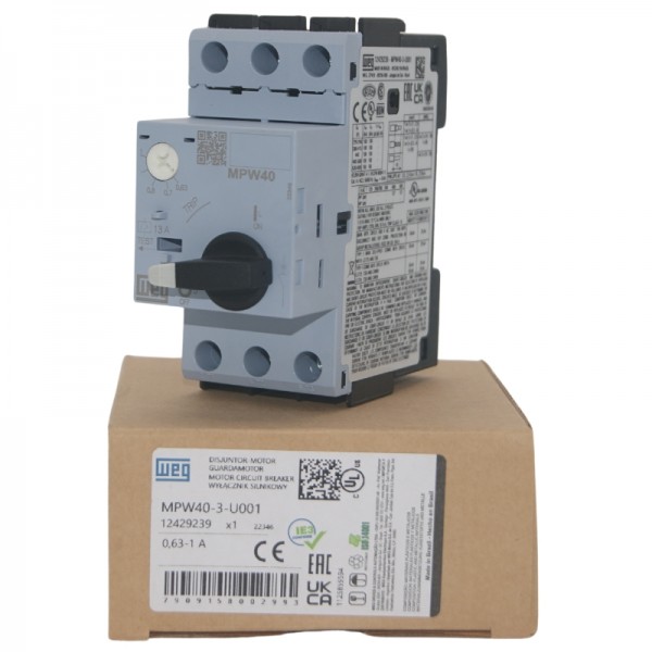 Disjuntor Motor Weg MPW de 0,63A a 1A Tripolar MPW40